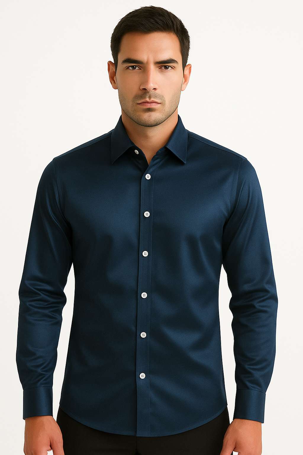 Camisa manga larga en algodón satinado.