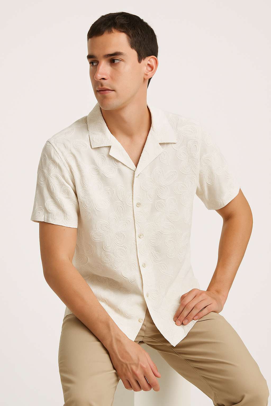 CAMISA HOMBRE CON CUELLO OVERSIZE TEJIDO CALADO