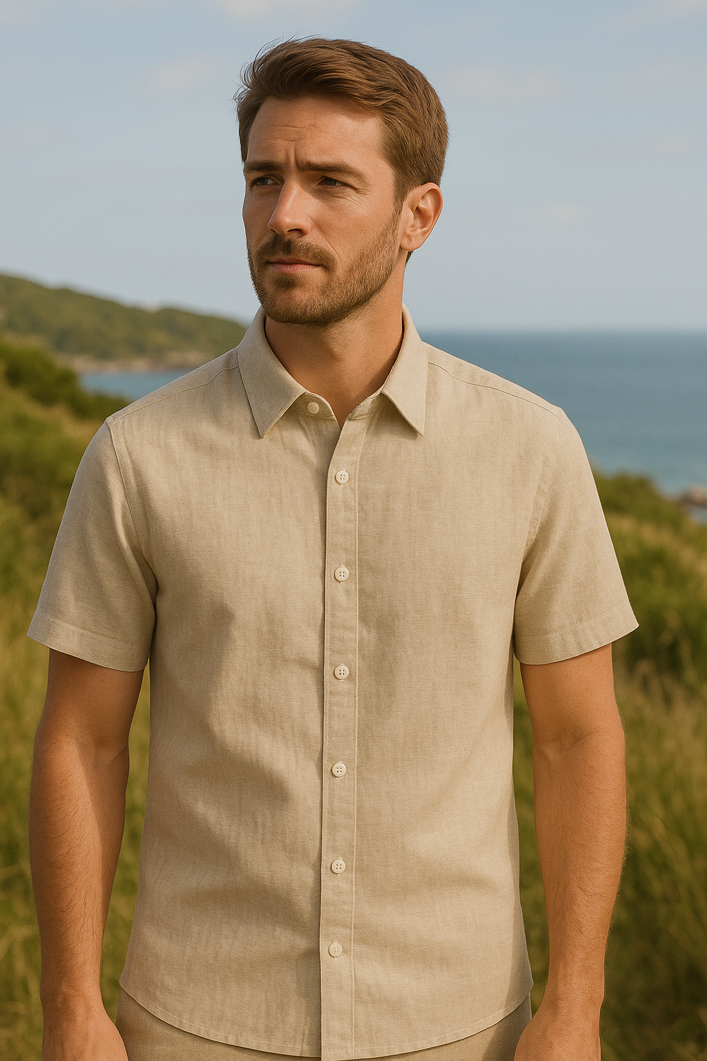 Camisa manga corta en lino con estilo, versatilidad, con textura suave y ligera, ideal para climas calidos.