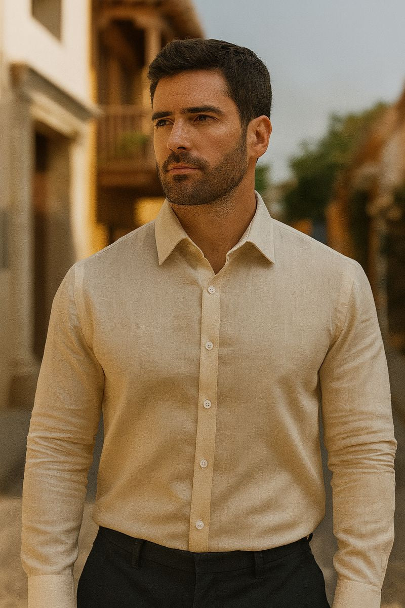 Camisa manga larga en lino de caballero