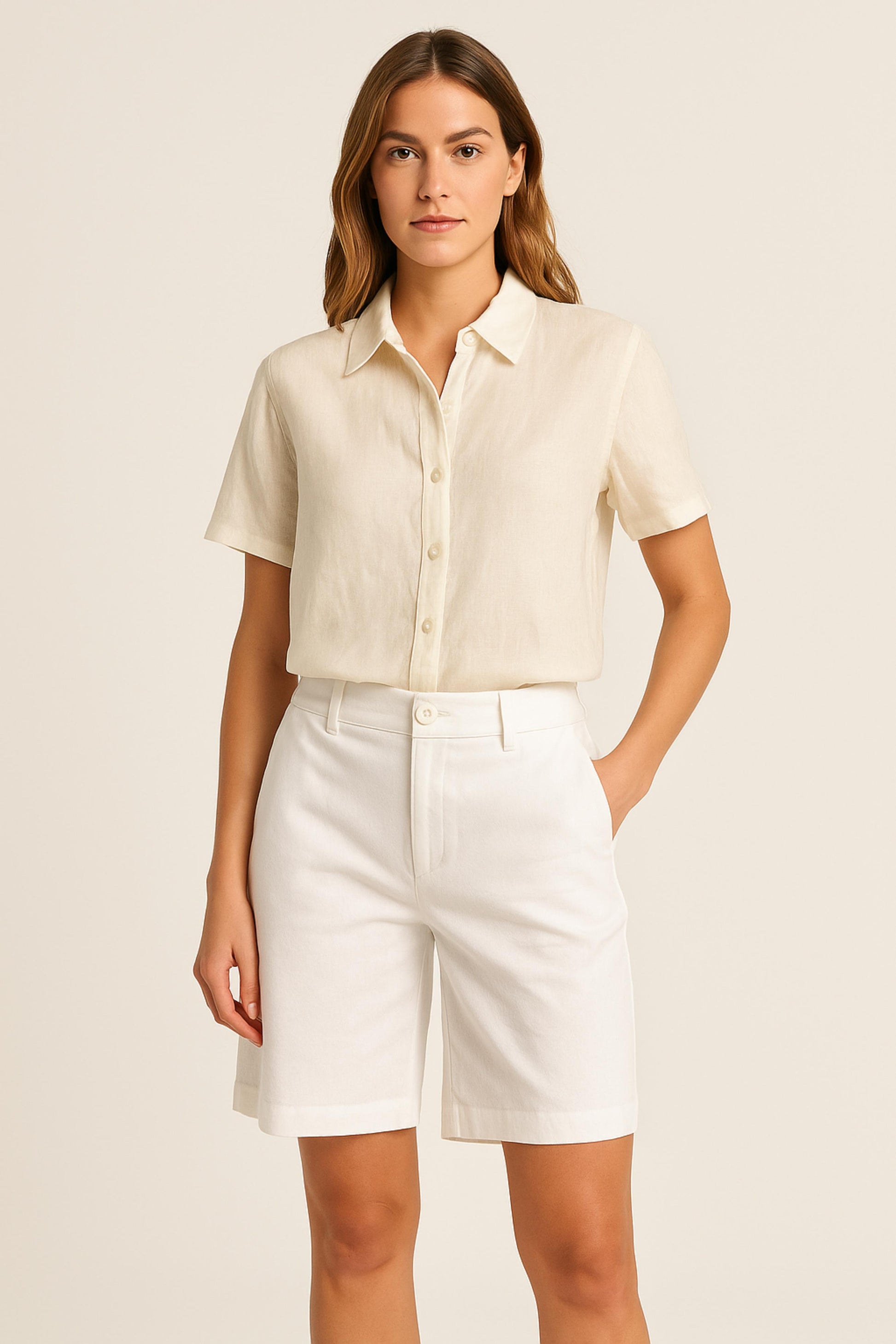 El Golfista Dama Buzios es una prenda diseñada para resaltar frescura, elegancia y comodidad. Confeccionado en lino, destaca por su golfista dama tipo bermuda suelta lisa. Disponible en colores blanco, natural, se adapta a distintos estilos y ocasiones, ideal tanto para climas cálidos como para eventos sociales y casuales.